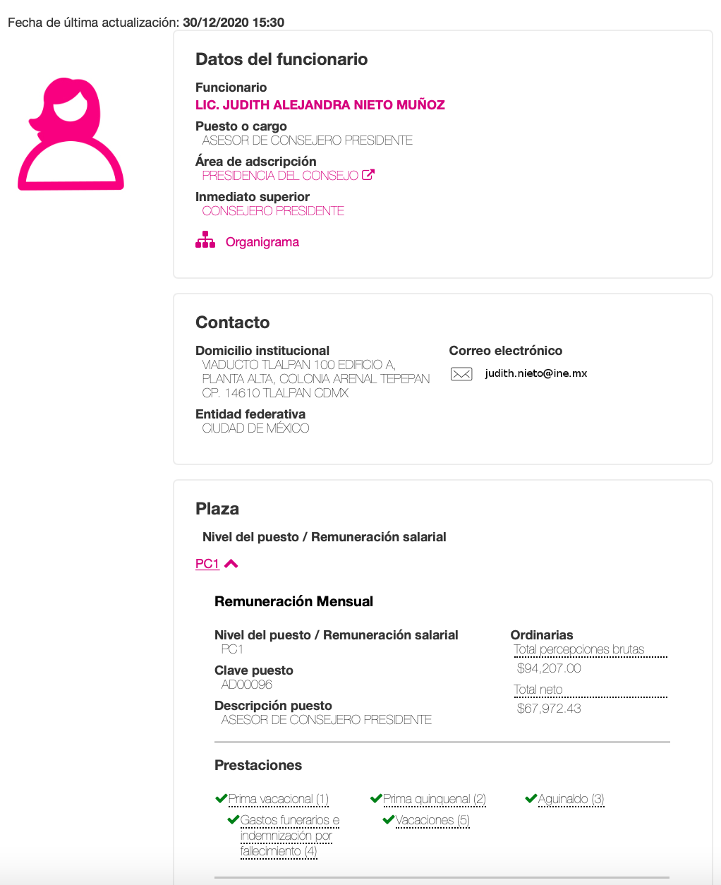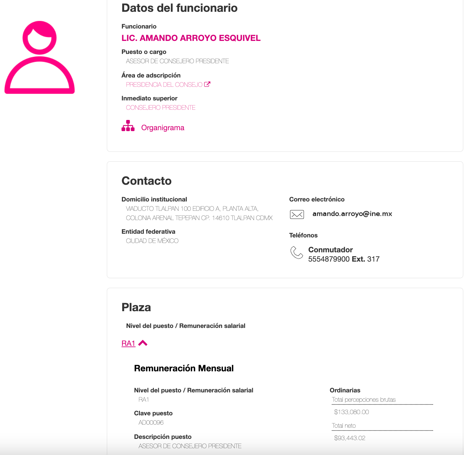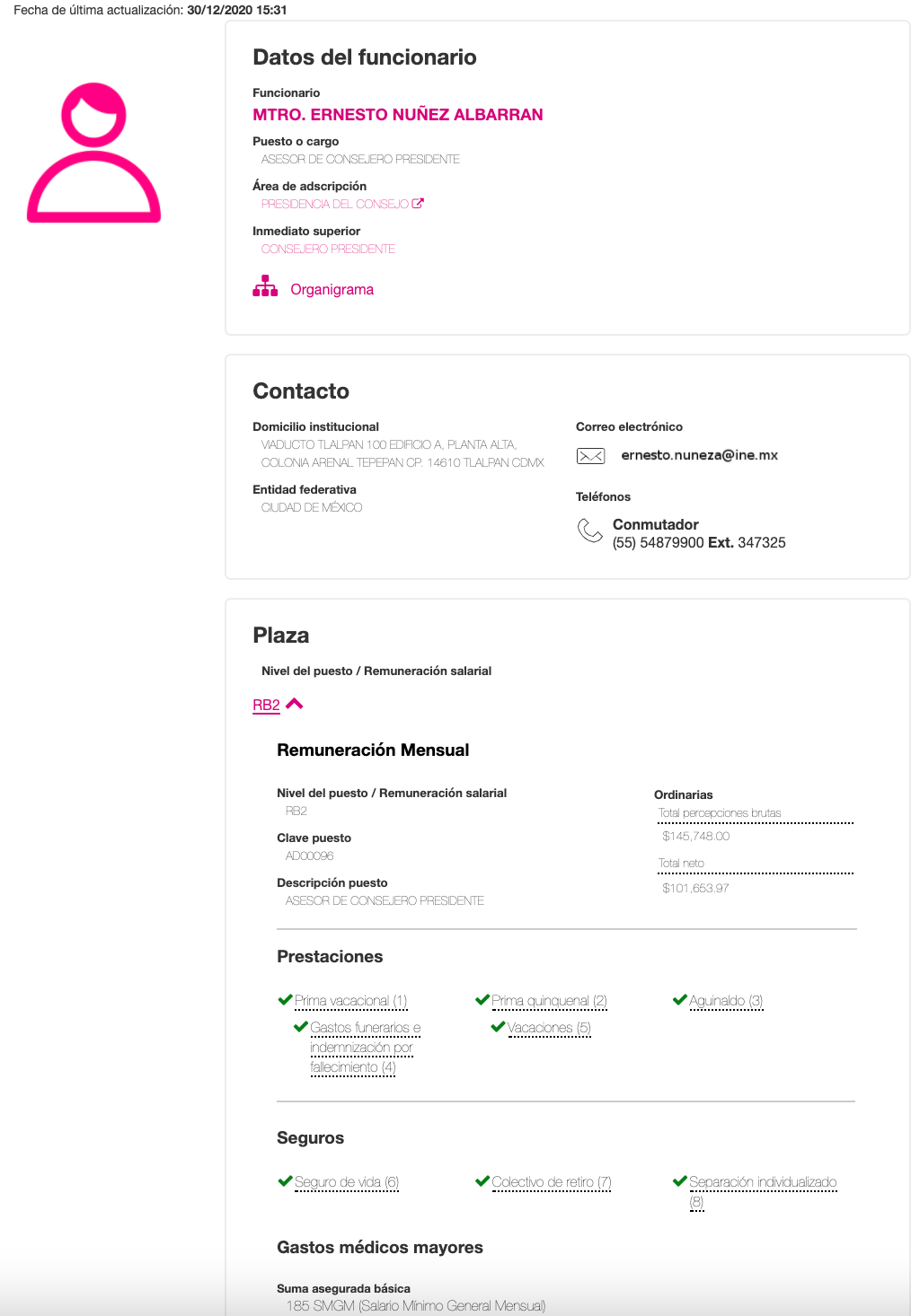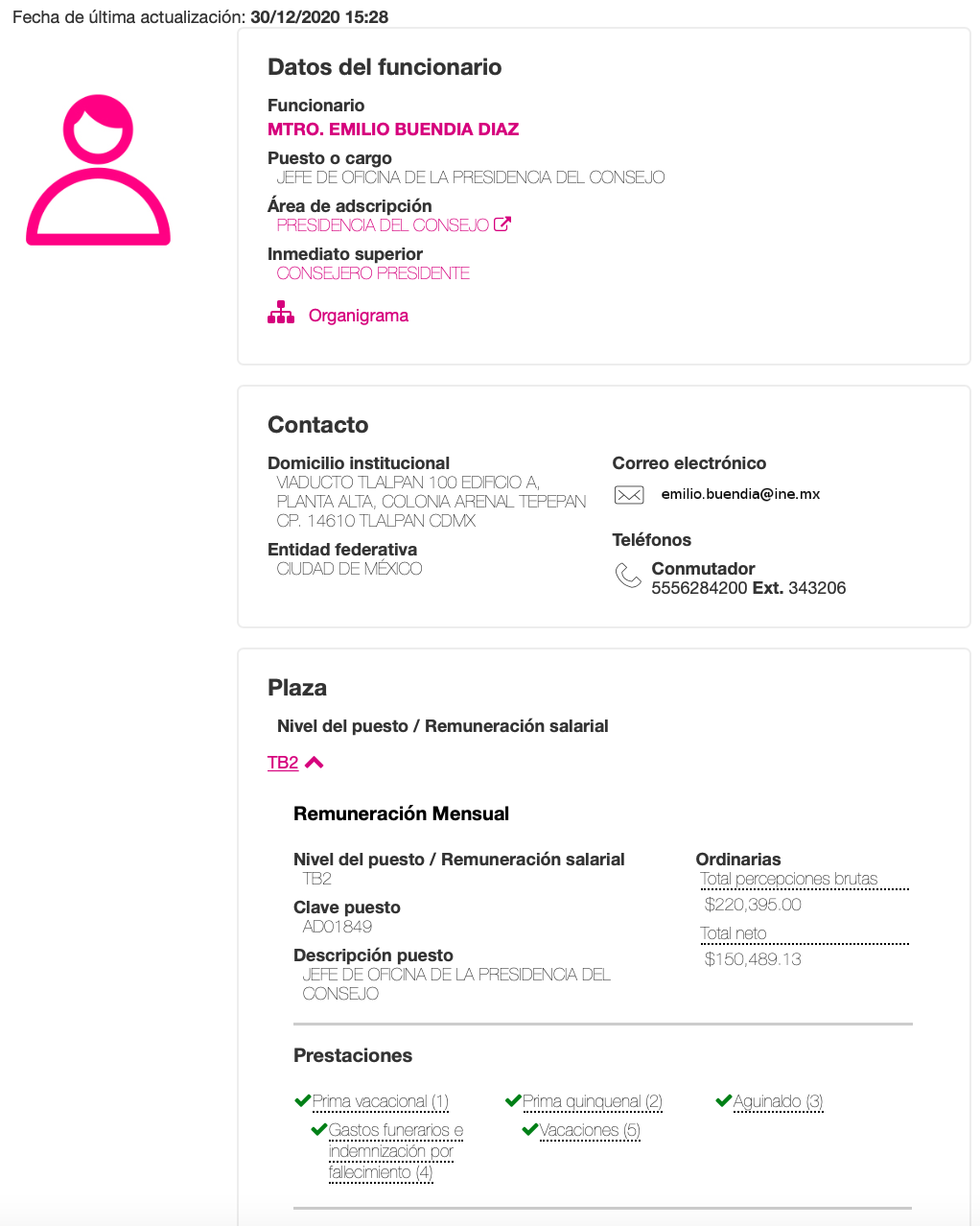 Sólo uno de estos funcionarios, Emilio Buendía, un abogado con estudios de posgrado en Derechos Humanos y Justicia Electoral, quien se desempeña como Jefe de la Oficina del Presidente del INE, percibe mensualmente un sueldo neto de 150 mil 500 pesos, lo que significa que cobra casi 40 mil pesos por encima de lo que recibe el Presidente de México, Andrés Manuel López Obrador.